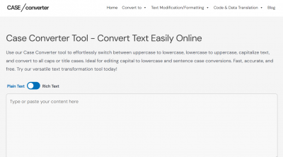 The Case Converter Tool is a versatile online application that transforms text capitalization and formatting. It lets users quickly change text to uppercase, lowercase, sentence case, or title case, as well as fun options like inverse and alternating cases. In addition to changing text cases, the tool provides other text modification features such as bolding, underlining, and producing special text effects. Whether for formal document editing, creative writing, or social media engagement, this tool suits various purposes for both personal and professional use.